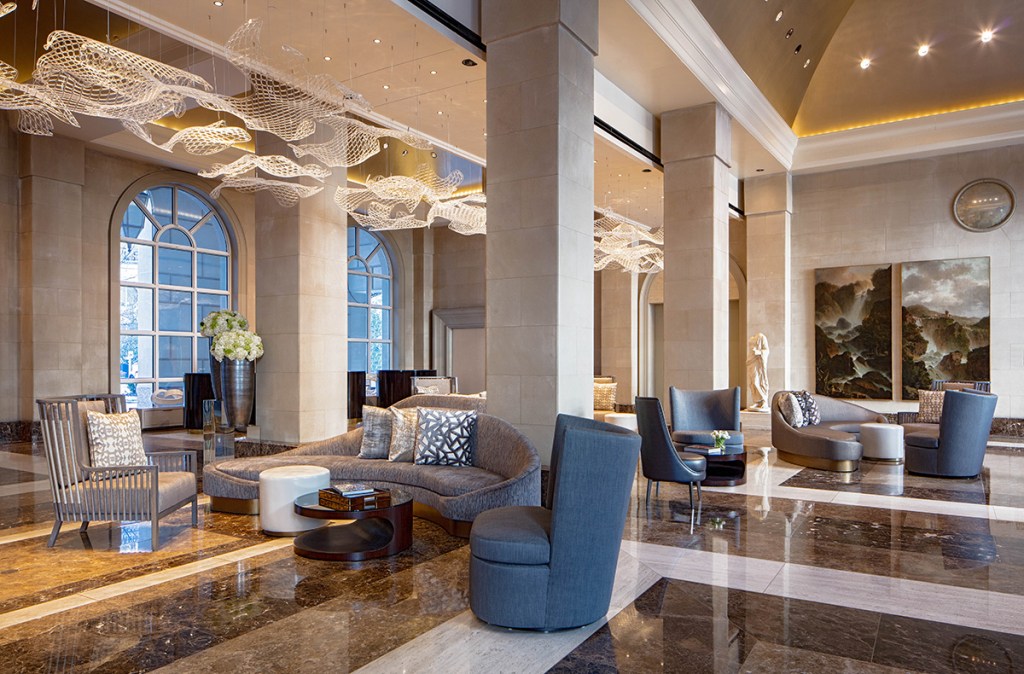 Picture stunning 1920’s Art Deco Design but with a more Modern twist. You have just imagined that lovely interior of Hotel Crescent Court. The interior designer (waldrop+nichols studio, llc) has truly outdone themselves with creating one of the most welcoming designs we have ever seen. The natural lighting in the grand foyer and the guest rooms offers guests with a sense of genuine happiness as if the weight of the world has momentarily been lifted off your shoulders. We can honestly say, that (until our stay at Hotel Crescent Court) we have never experienced a hotel that has a genuine ability to call us in with its interior design saying “Come, get away from all your worries of the world and sit with us. Relax, all will be well.”